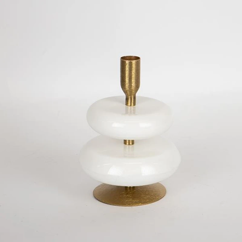 Κηροπήγιο μεταλλικό σε λευκό - χρυσό χρώμα από την ESTHETI - Διαστάσεις: 12x12x16,5εκ.