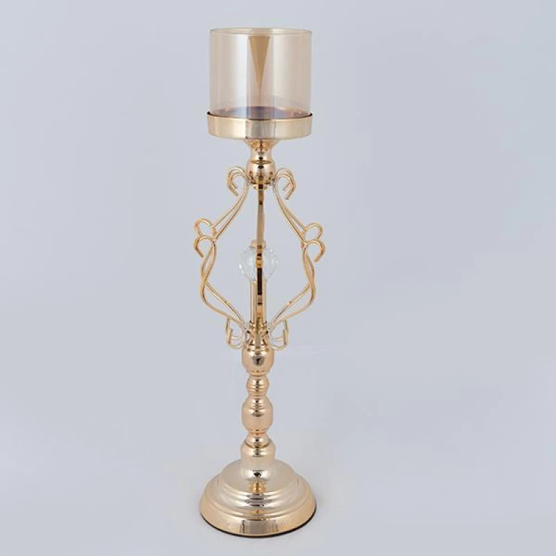 Κηροπήγιο μεταλλικό σε χρυσό χρώμα από την ESTHETI - Διαστάσεις: 15x42εκ.