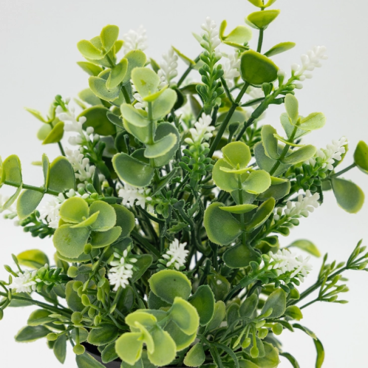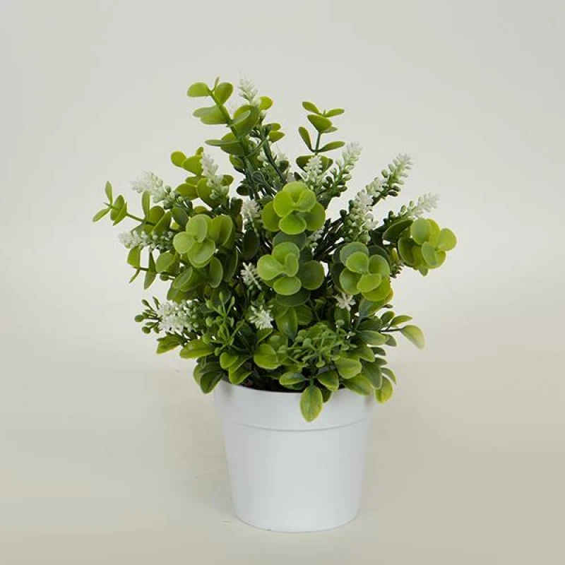 Γλαστράκι με πράσινο φυτό και λευκά ανθάκια από την ESTHETI - Διαστάσεις: 22εκ. - Η ελάχιστη ποσότητα αγοράς για αυτό το προϊόν είναι 6τμχ.