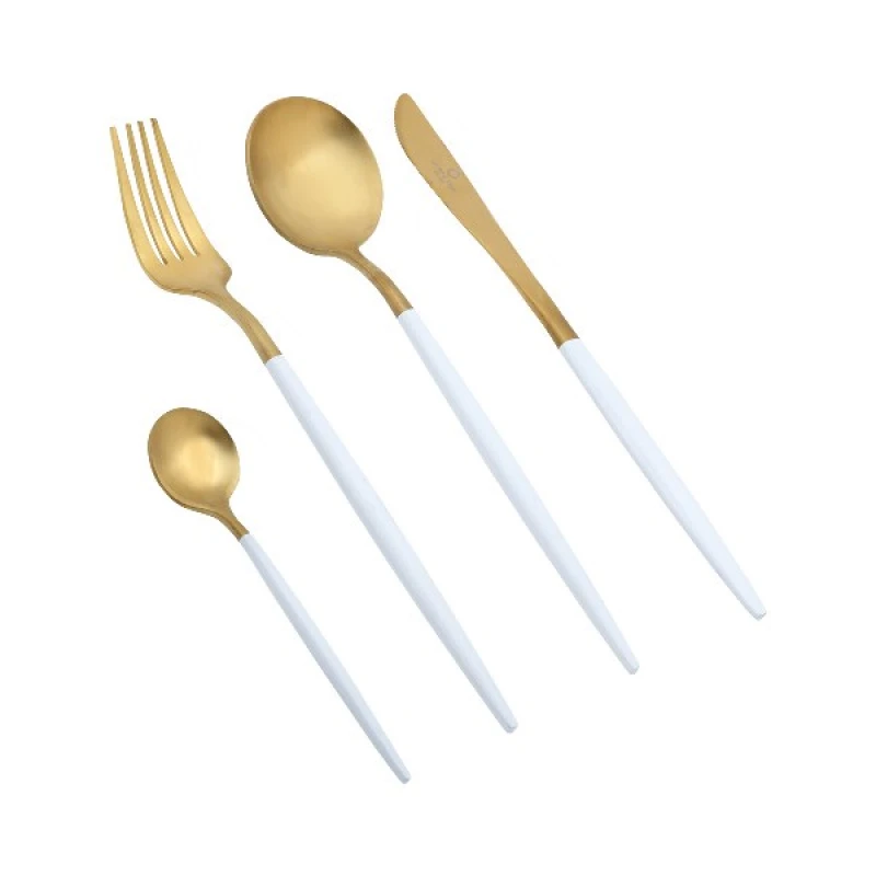 Σετ μαχαιροπήρουνα 24τμχ σε λευκό-χρυσό ματ χρώμα της σειράς Senso από την Cryspo Trio. Το σετ περιλαμβάνει: 6 πηρούνια φαγητού, 6 μαχαίρια φαγητού, 6 κουτάλια φαγητού και 6 κουταλάκια γλυκού. Συνίσταται πλύσιμο στο χέρι.