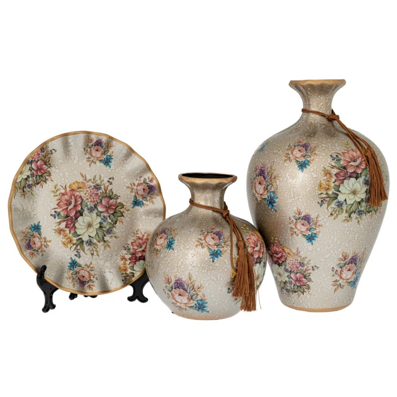 Διακοσμητικά επιτραπέζια σετ 3τμχ κεραμικά με σχέδιο λουλούδια από την iliadis - Διαστάσεις: 34x22εκ.-21x17εκ.-22x3εκ.