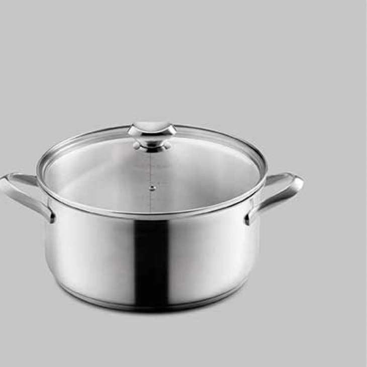 Κατσαρόλα ανοξείδωτη με γυάλινο καπάκι, με διαβαθμίσεις εσωτερικά και μπορεί να τοποθετηθεί στον φούρνο (χωρίς το καπάκι) από την Metaltex - Διαστάσεις: 28εκ., Χωρηστικότητας: 6,8ltr.