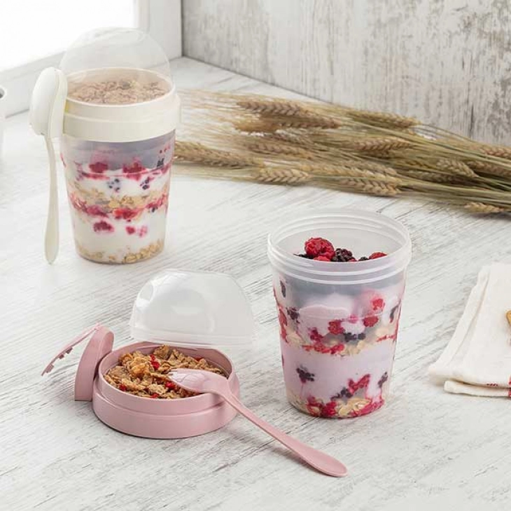 Δοχεία φορητά από την Veltihome Allset ιδανικά για μικρούς και μεγάλους! Με διαχωριζόμενο καπάκι για φρέσκια διατήρηση και ενσωματωμένο κουτάλι, έχετε πάντα μαζί σας ένα υγιεινό σνακ, οποιαδήποτε στιγμή της ημέρας.