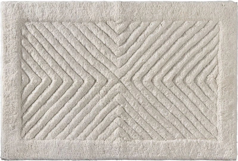 Πατάκι μπάνιου μονόχρωμο με ανάγλυφο γεωμετρικό σχέδιο. Σύνθεση από 100% βαμβάκι. Χρησιμοποιήστε πατάκι για να ομορφύνετε τον χώρο του μπάνιου και να τον προστατέψετε από τυχόν νερά.