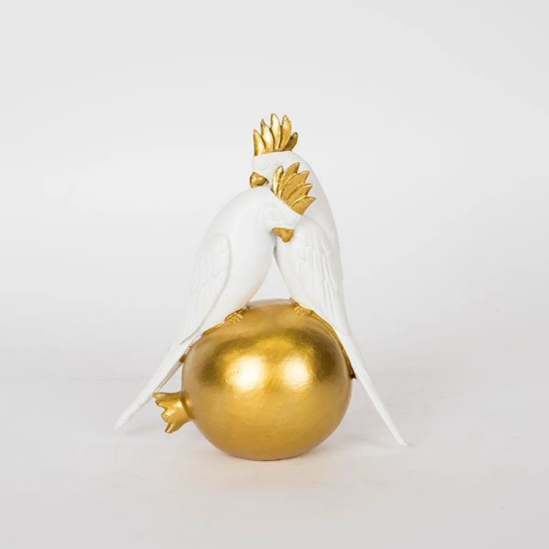 Διακοσμητικοί επιτραπέζιοι παπαγάλοι πάνω σε μπάλα, polyresin σε λευκό - χρυσό χρώμα από την ESTHETI - Διαστάσεις: 15x8x17εκ.