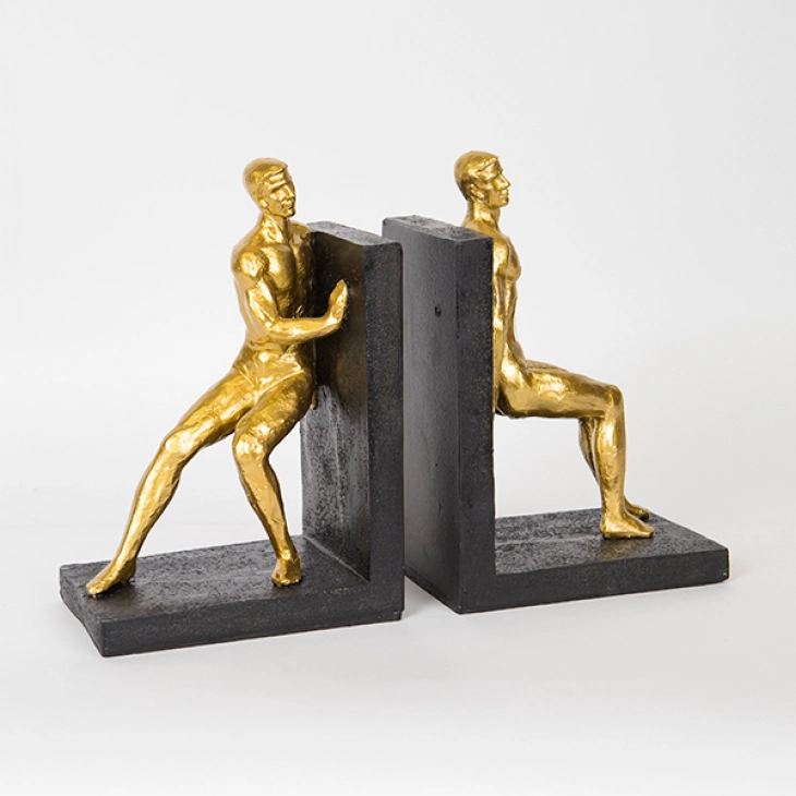 Βιβλιοστάτης Σετ 2τμχ Με Αγαλματίδια Χρυσά-Μαύρα 33,5x11,5x25εκ. ESTHETI 752-19013