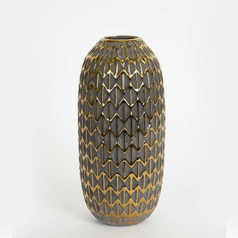 Βάζο Κεραμικό Μαύρο-Χρυσό 13,8x28,5εκ. ESTHETI 752-20237