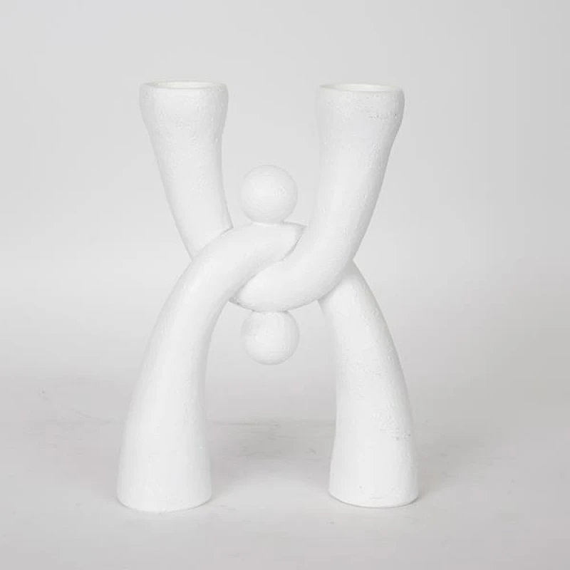Κηροπήγιο polyresin σε λευκό χρώμα από την ESTHETI - Διαστάσεις: 19x6,5x25,5εκ.