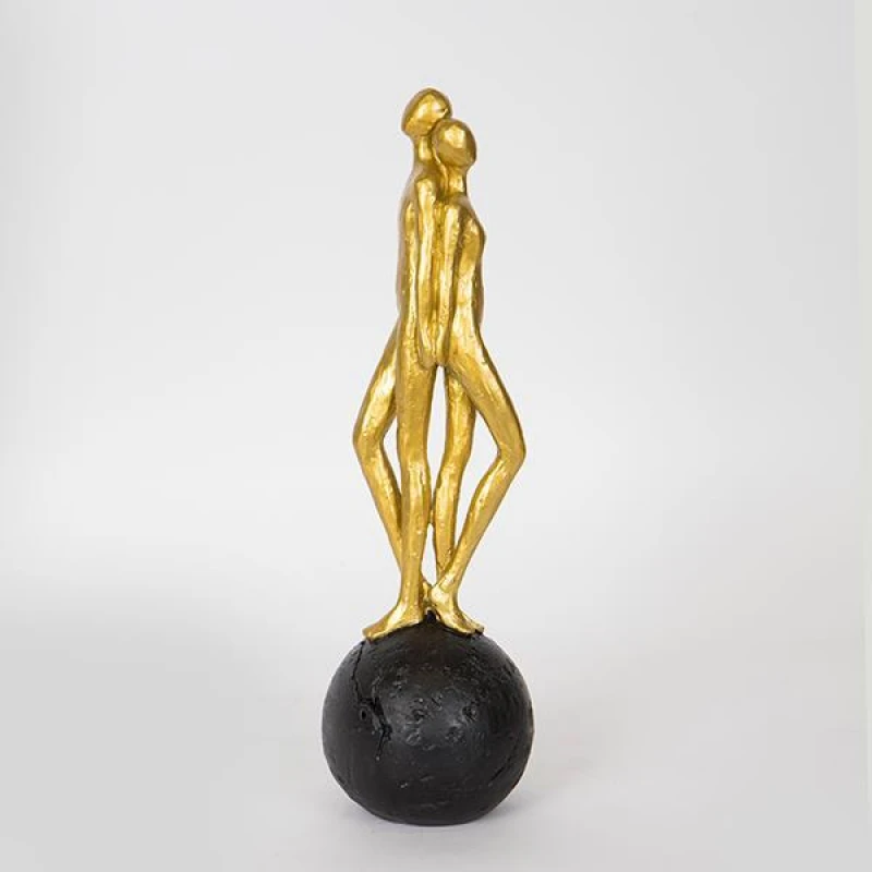 Διακοσμητική επιτραπέζια φιγούρα ζευγάρι πάνω σε μπάλα σε χρυσό - μαύρο χρώμα από την ESTHETI - Διαστάσεις: 9,5x9,5x31,5εκ.