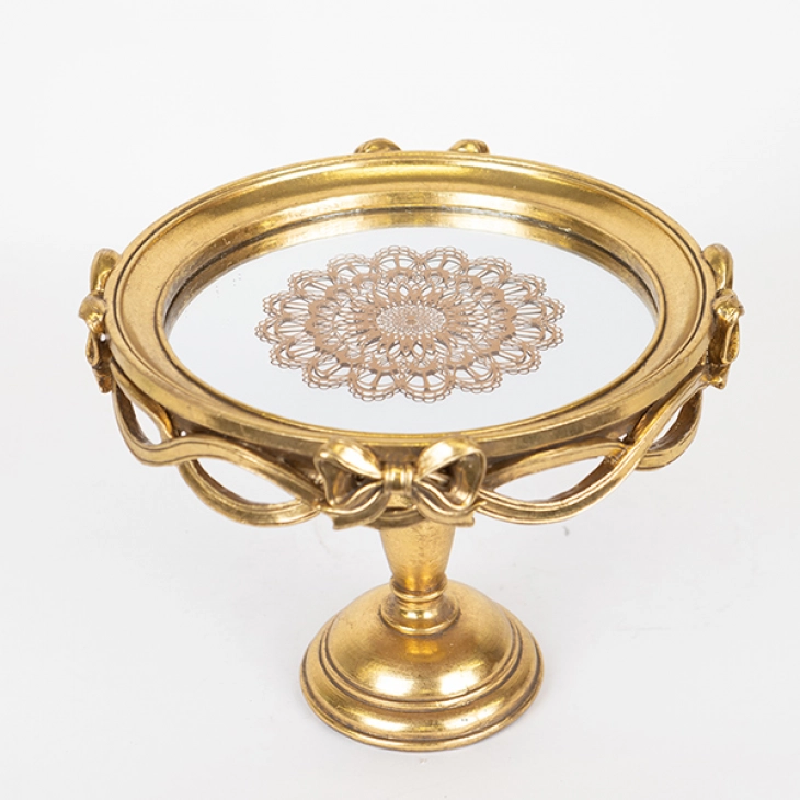 Δίσκος Με Πόδι & Καθρέπτη Polyresin Χρυσός 25,5x25,5x19,7εκ. ESTHETI 752-16071