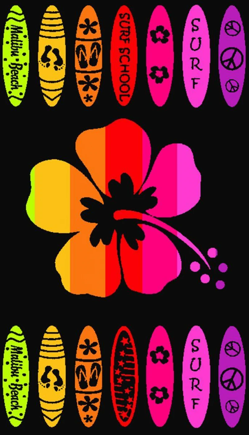 Βελουτέ πετσέτα θαλάσσης, διαστάσεων 87x165εκ., με ζακάρ σχέδιο διπλής όψεως που απεικονίζει ένα λουλούδι με σανίδες του σέρφ, σε μαύρο χρώμα με πολύχρωμες λεπτομέρειες. Κατασκευασμένη από 100% αιγυπτιακό βαμβάκι, υψηλής απαλότητας και απορροφητικότας, βάρους 420 gr/m². Συσκευασία Polybag.