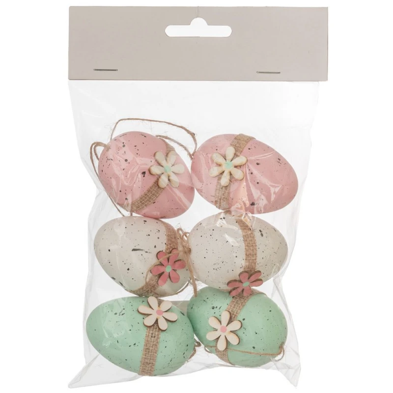 Πασχαλινά Διακοσμητικά Αυγά Σετ 6τμχ Πλαστικά Ροζ-Βεραμάν-Λευκά 4x6εκ. iliadis 89480