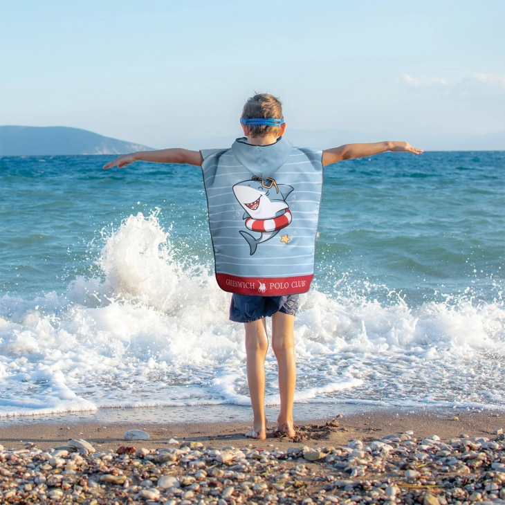 Τα παιδικά πόντσο της Greenwich Polo Club είναι η ιδανική επιλογή για μετά το μπάνιο ή τη θάλασσα. Με προσεγμένη σχεδίαση και μοντέρνα χρώματα, προσφέρουν αίσθηση απαλότητας και ζεστασιάς, χαρίζοντας στους μικρούς μας φίλους άνεση και ελευθερία κινήσεων. Ένα πρακτικό και κομψό αξεσουάρ που ξεχωρίζει!