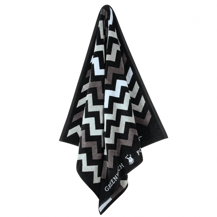 Πετσέτα Θαλάσσης Βαμβακερή 90x180εκ. Essential 4007 Μαύρο-Γκρι Greenwich Polo Club