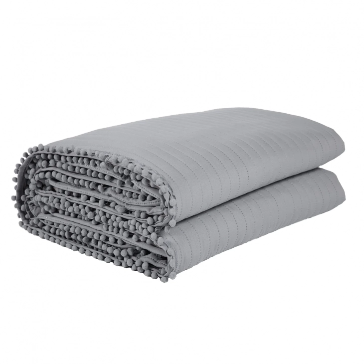 Kουβερλί μονόχρωμο της σειράς Happy με pompom. Είναι από 100% microfibre, υποαλλεργικό, διαίτερα απαλό στην αφή και ανθεκτικό στη χρήση. Διατίθεται σε διάσταση 220x240εκ. Das home...makes your house a home!