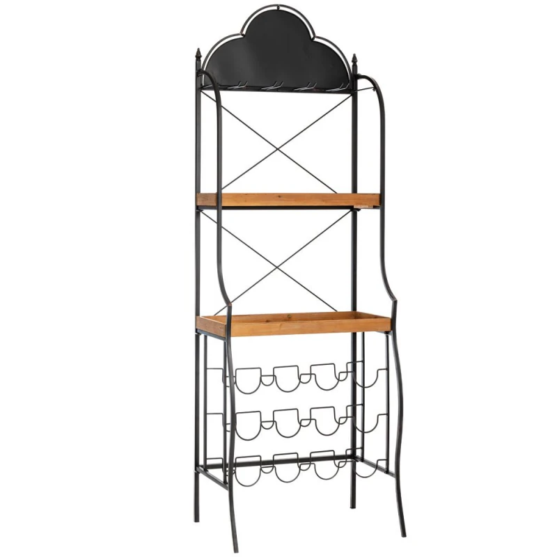 Επιδαπέδια μεταλλική κάβα ποτών σε μαύρο χρώμα. Διαθέτει δύο ξύλινα ράφια και έχει 12 θέσεις για φιάλες καθώς και 4 θέσεις για 8 ποτήρια. Απαιτεί συναρμολόγηση.
