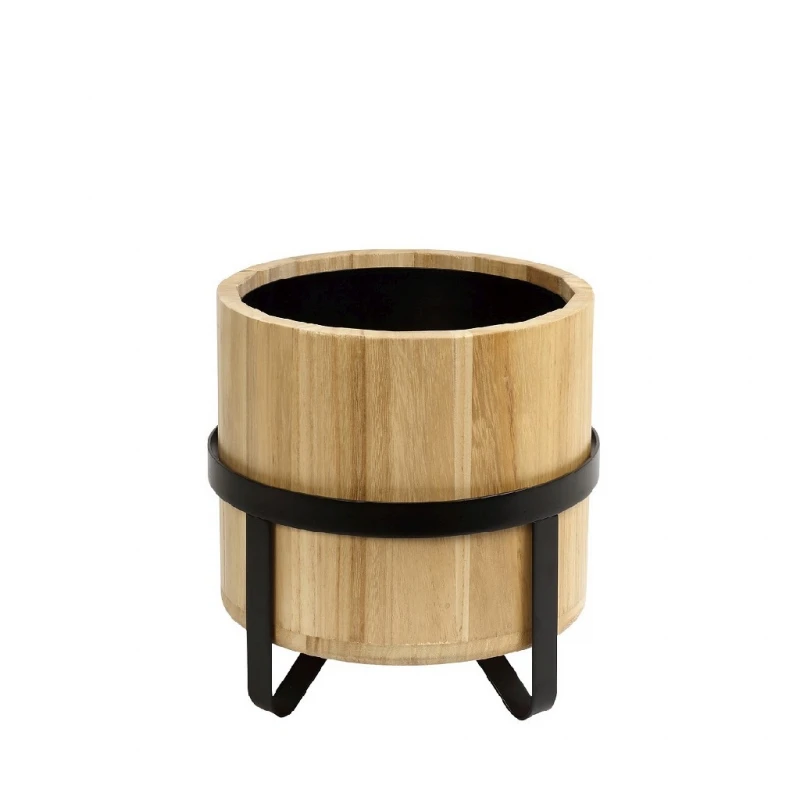 Σαμπανιέρα ξύλινη σε φυσικό χρώμα με επίστρωση βαφής και μεταλλική μαύρη βάση της σειράς Bavaria από την ESPIEL - Διαστάσεις: 24x25εκ.