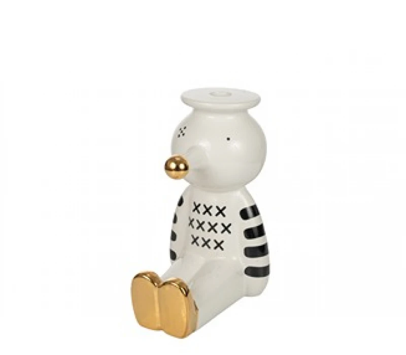 Βάζο κεραμικό σε σχήμα πιγκουίνου σε λευκό-μαύρο-χρυσό χρώμα από την Zen Collection - Διαστάσεις: 12x18x21εκ.