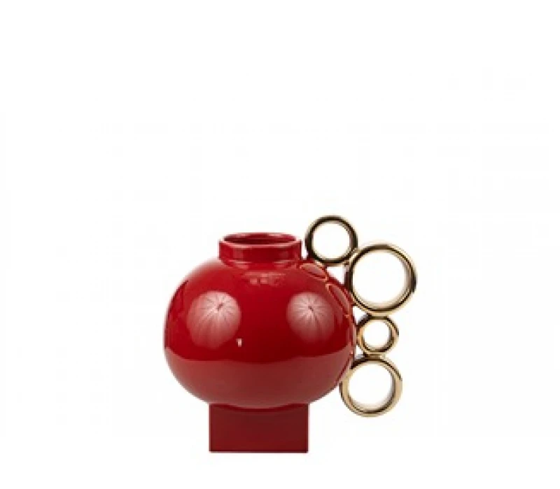 Βάζο κεραμικό σε μπορντώ χρώμα με χρυσές μπίλιες από την Zen Collection - Διαστάσεις: 24,5x19x22,5εκ.