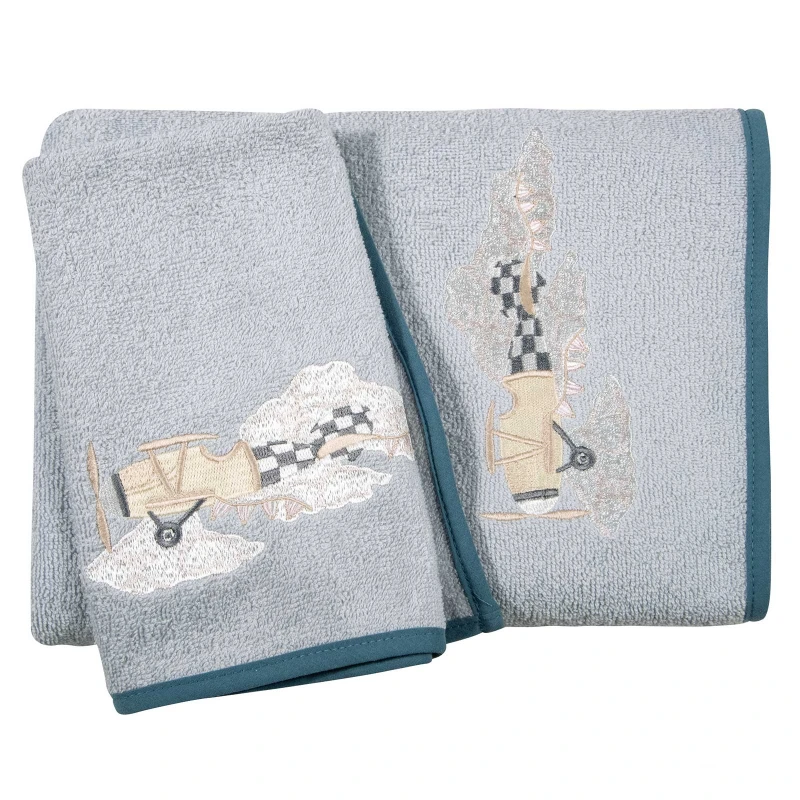 Σετ Πετσέτες 2τμχ Βαμβακερές Με Κέντημα Essential 8852 Γκρι-Μπλε Greenwich Polo Club