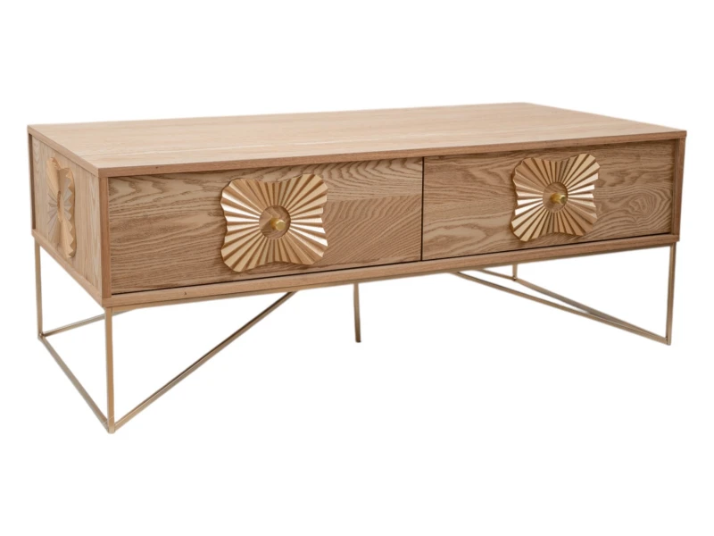 Τραπεζάκι σαλονιού ξύλινο σε καφέ χρώμα με μεταλλικά στοιχεία σε χρυσό χρώμα από την Zen Collection - Διαστάσεις: 120x60x45εκ.
