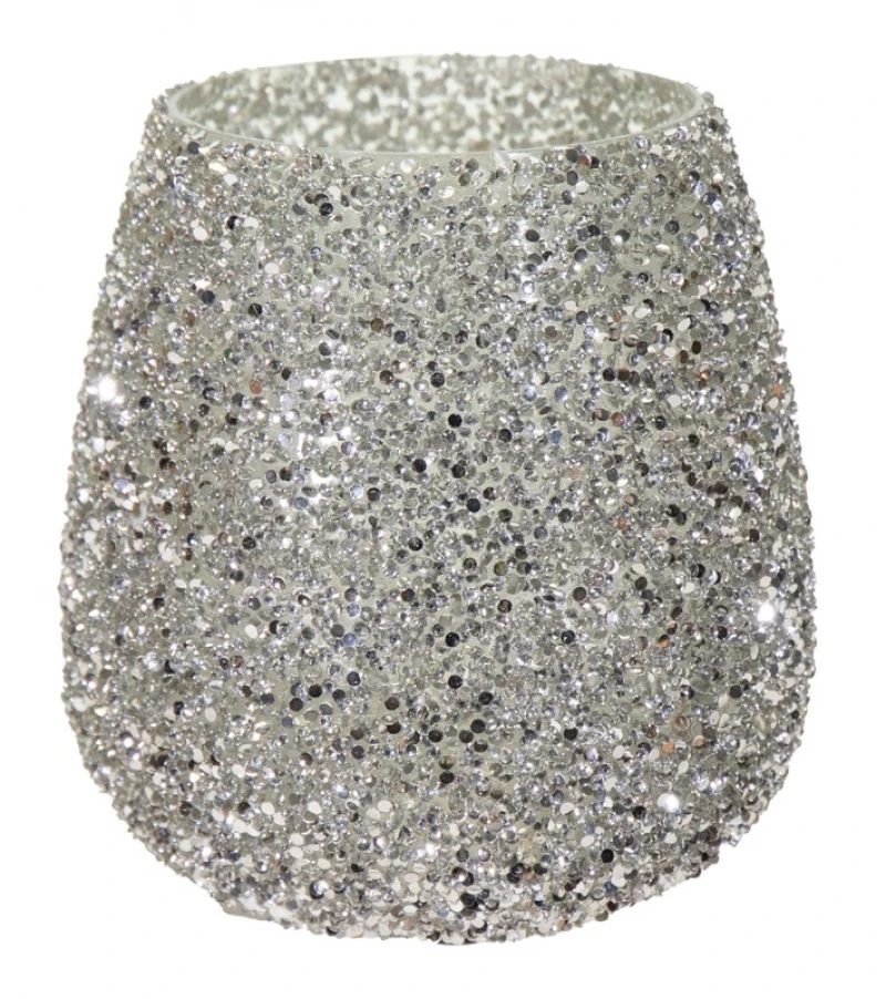 Κηροπήγιο γυάλινο strass σε ασημί χρώμα από την Art Et Lumiere - Διαστάσεις: 9,5x9εκ.