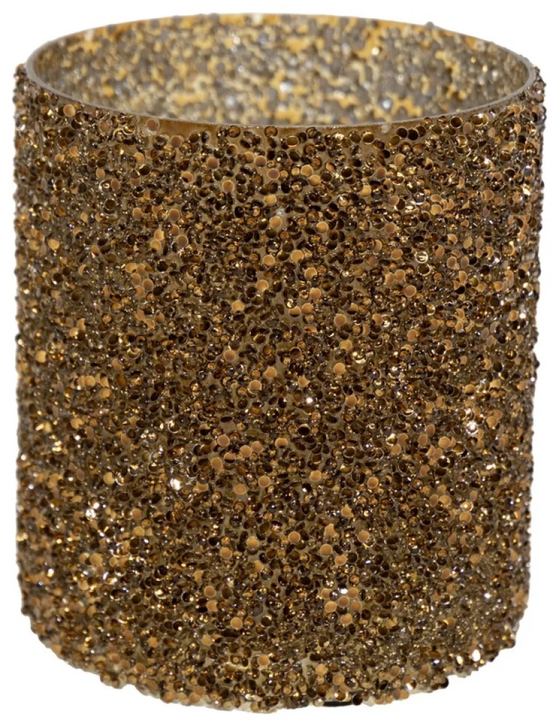 Κηροπήγιο γυάλινο strass amber (χρώμα κεχριμπαριού-χρυσοκίτρινο) από την Art Et Lumiere - Διαστάσεις: 13,5x15εκ.