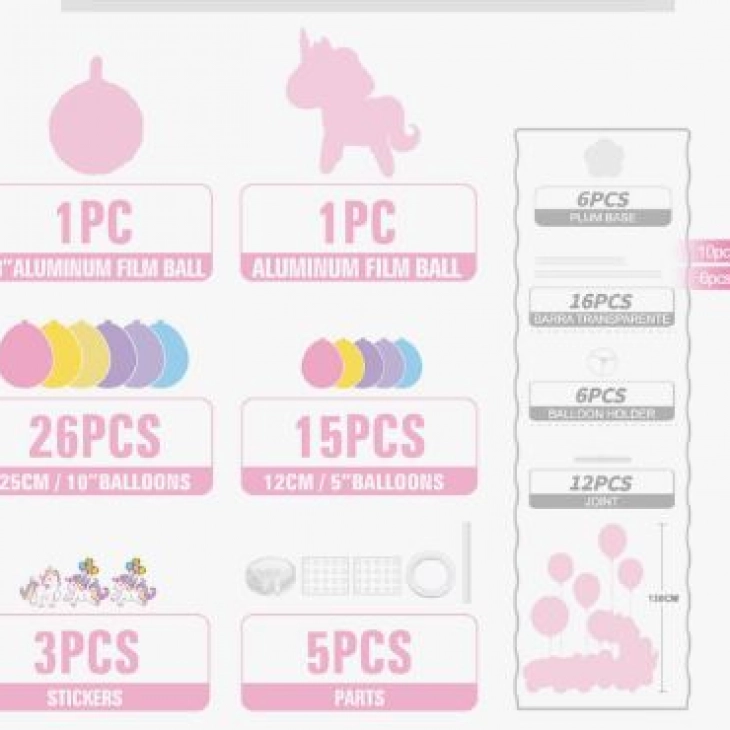 Σετ 57τμχ μπαλόνια πολύχρωμα με σχέδιο Unicorn.