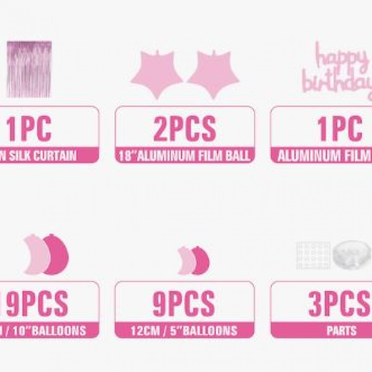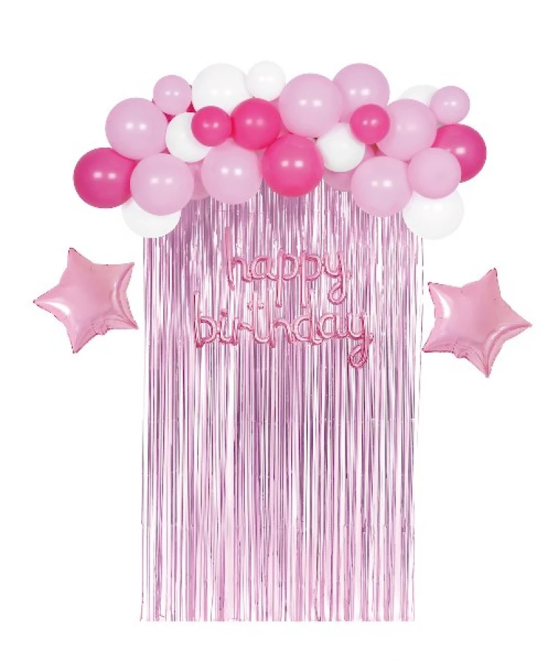 Σετ 35τμχ μπαλόνια Happy Birthday σε ροζ-λευκό-ματζέντα χρώμα.