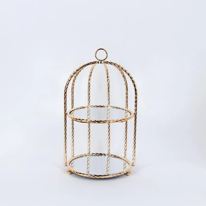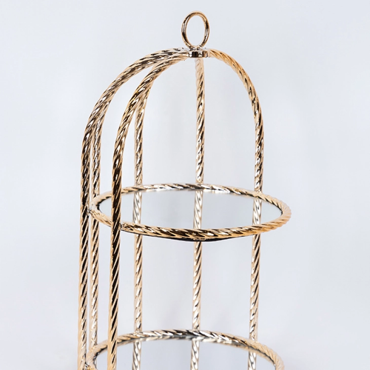 Ορντερβιέρα 2 όροφη στρογγυλή μεταλλική με καθρέπτη, σε χρυσό χρώμα από την ESTHETI - Διαστάσεις: 23x42εκ.