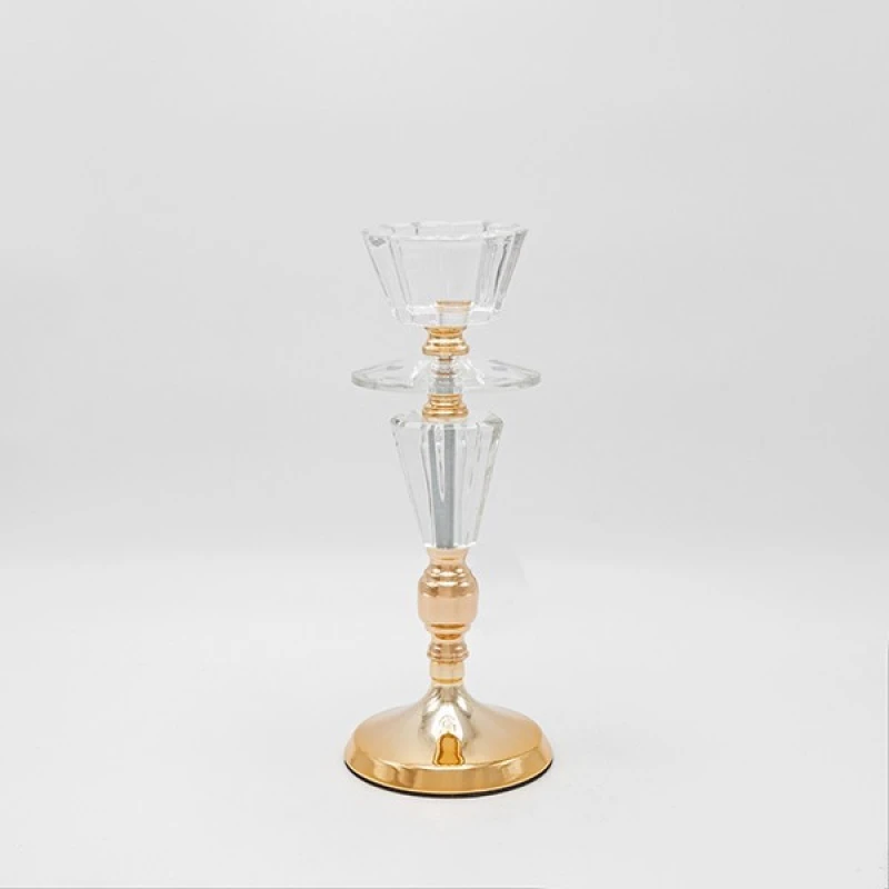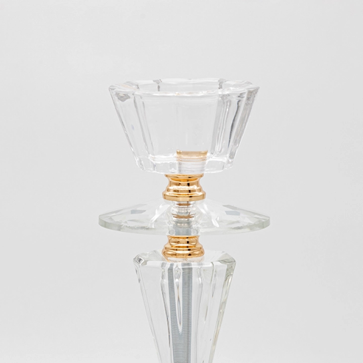 Κηροπήγιο γυάλινο - μεταλλικό σε χρυσό χρώμα από την ESTHETI - Διαστάσεις: 11x30εκ.