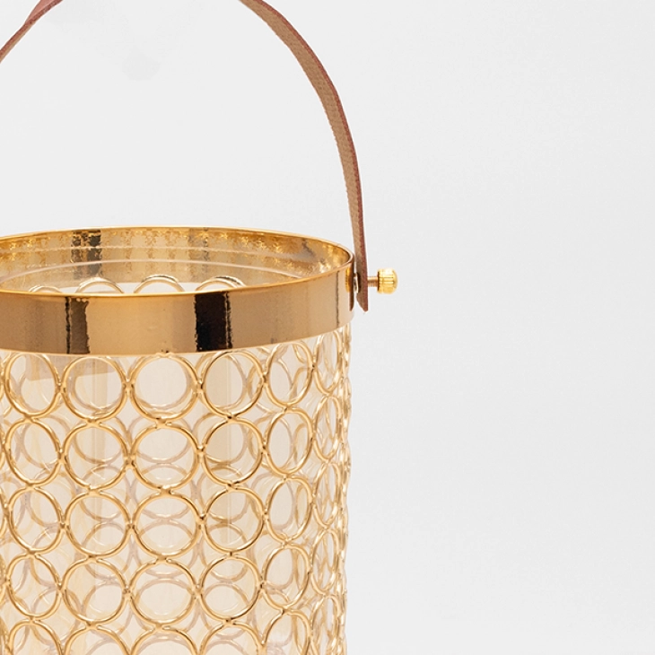 Φανάρι μεταλλικό - γυάλινο σε χρυσό χρώμα από την ESTHETI - Διαστάσεις: 14x27εκ.