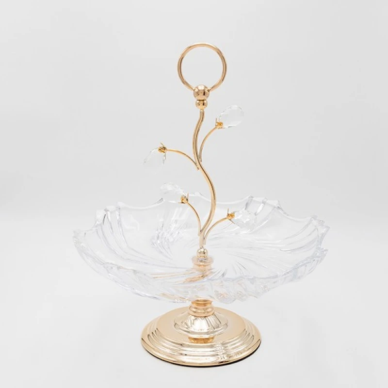Ορντερβιέρα γυάλινη με μεταλλική βάση και λαβή, σε χρυσό χρώμα από την ESTHETI - Διαστάσεις: 33x38,5εκ.