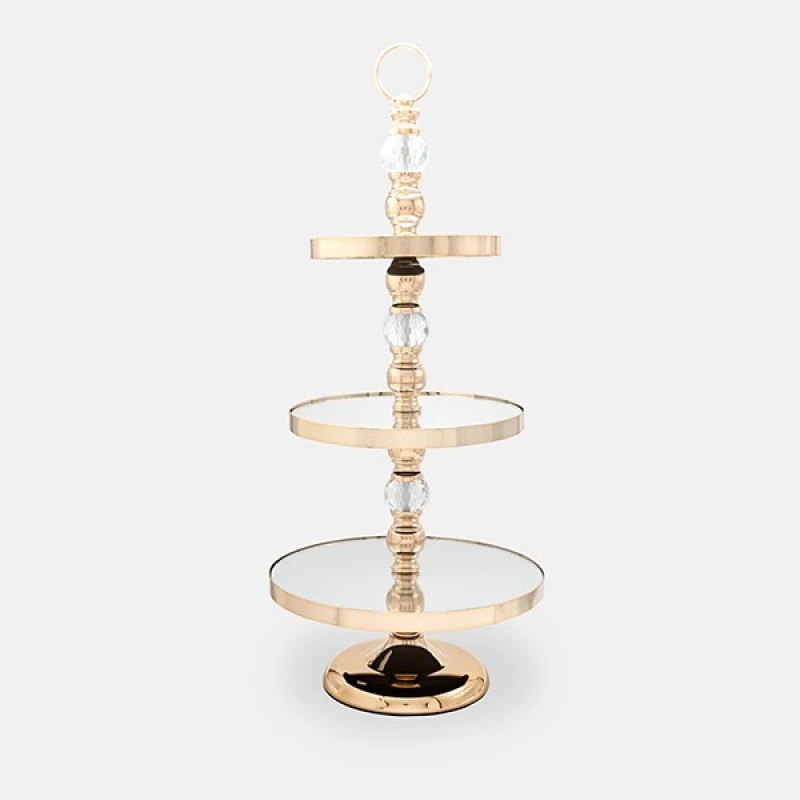 Ορντερβιέρα 3 όροφη στρογγυλή μεταλλική με καθρέπτη, σε χρυσό χρώμα από την ESTHETI - Διαστάσεις: 30x68εκ.