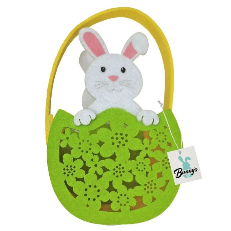 Καλαθάκι τσόχινο λαγός σε αυγό σε πράσινο-κίτρινο χρώμα από την Bunny's - Διαστάσεις: 10x8x19εκ. - Η ελάχιστη ποσότητα αγοράς για αυτό το προϊόν είναι 6τμχ.