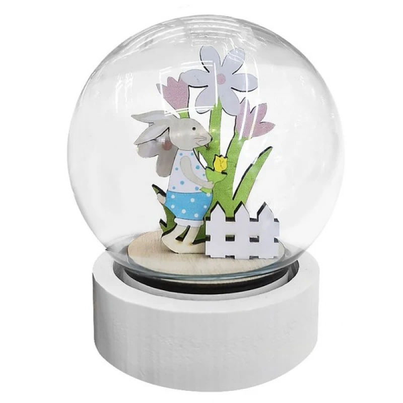Πασχαλινή Γυάλινη Σφαίρα Λαγός Με Λουλούδια & Φως 8x12εκ. Bunny's 73-2077
