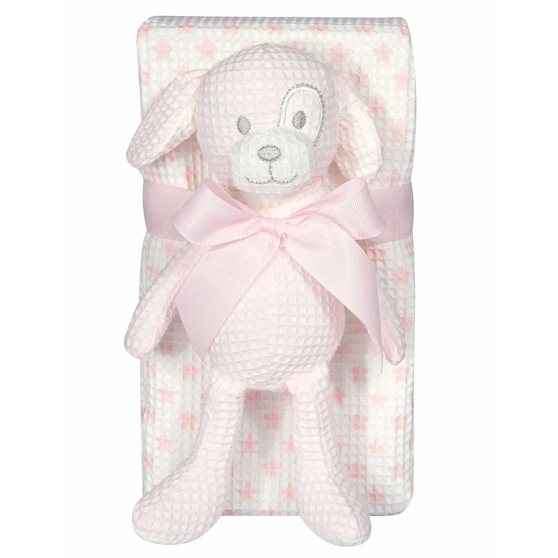 Κουβέρτα Πικέ Βαμβακερή Με Παιχνίδι Αγκαλιάς-Λίκνου 75x100εκ. Essential Baby 8857 Ροζ-Λευκή Greenwich Polo Club