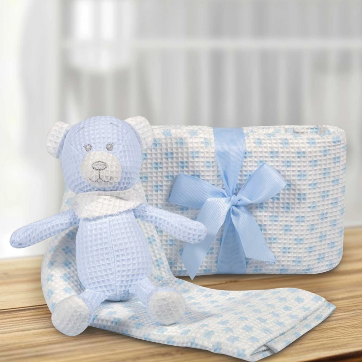 Κουβέρτα Πικέ Βαμβακερή Με Παιχνίδι Αγκαλιάς-Λίκνου 75x100εκ. Essential Baby 8856 Μπλε-Λευκή Greenwich Polo Club