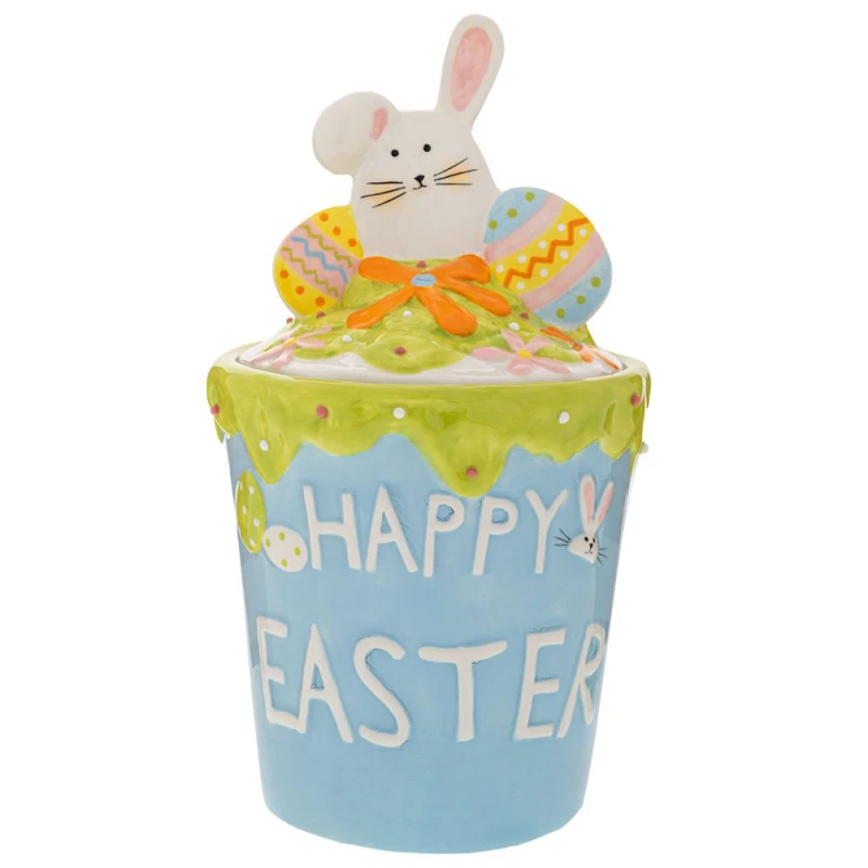Πασχαλινή μπισκοτιέρα κεραμική σε μπλε χρώμα από την iliadis - Διαστάσεις: 18x18x32εκ.