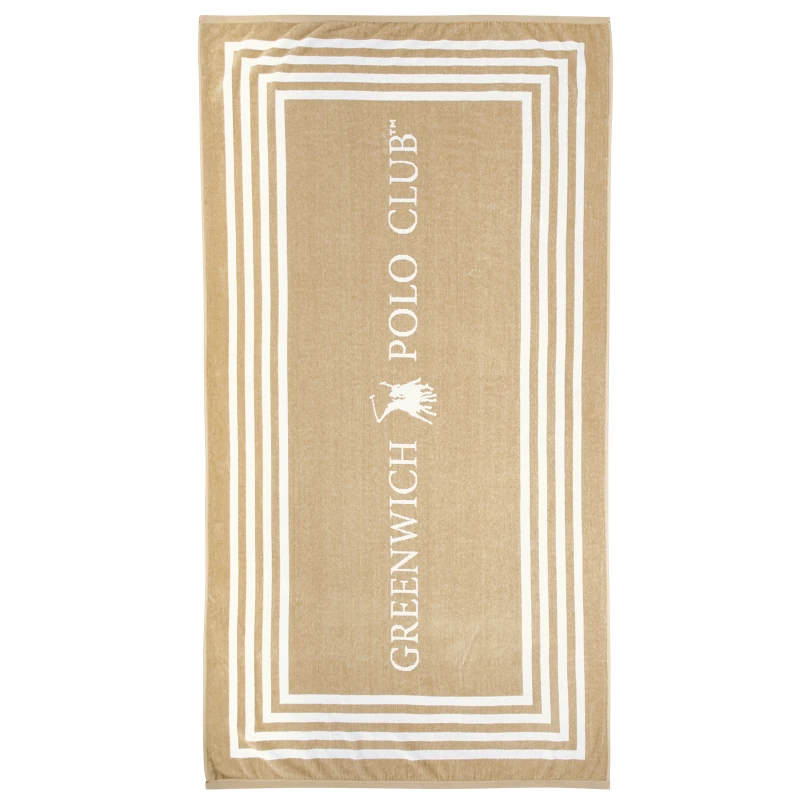 Πετσέτα Θαλάσσης Βαμβακερή 90x170εκ. Essential 4053 Λευκή-Taupe Greenwich Polo Club