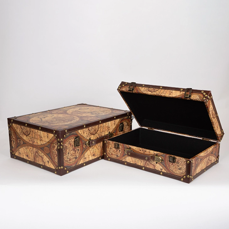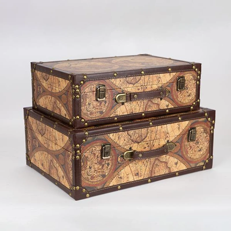 Σετ 2τμχ κουτί - βαλίτσα ξύλινα με σχέδιο χάρτη από την ESTHETI - Διαστάσεις: 42x30x16εκ.-37x25x13εκ.