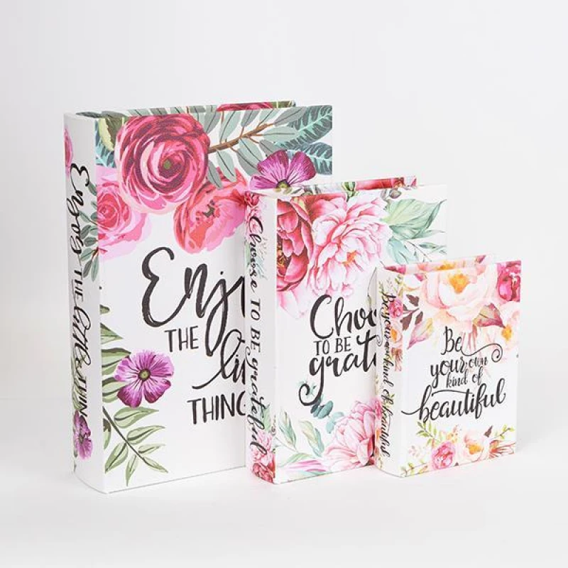 Διακοσμητικά κουτιά βιβλία σετ 3τμχ ξύλινα σε κόκκινο χρώμα με σχέδιο τριαντάφυλλα από την ESTHETI - Διαστάσεις: 32x23x7εκ./25x18x5,5εκ./18x13x4εκ.