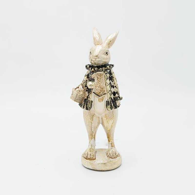 Πασχαλινός διακοσμητικός επιτραπέζιος λαγός polyresin με καλαθάκι από την ESTHETI - Διαστάσεις: 9x9,5x24,5εκ.