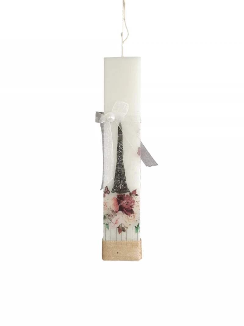 Λαμπάδα Χειροποίητη Πλακέ Λευκή 2,7x1,2x25εκ. Με Decoupage Paris 24-918
