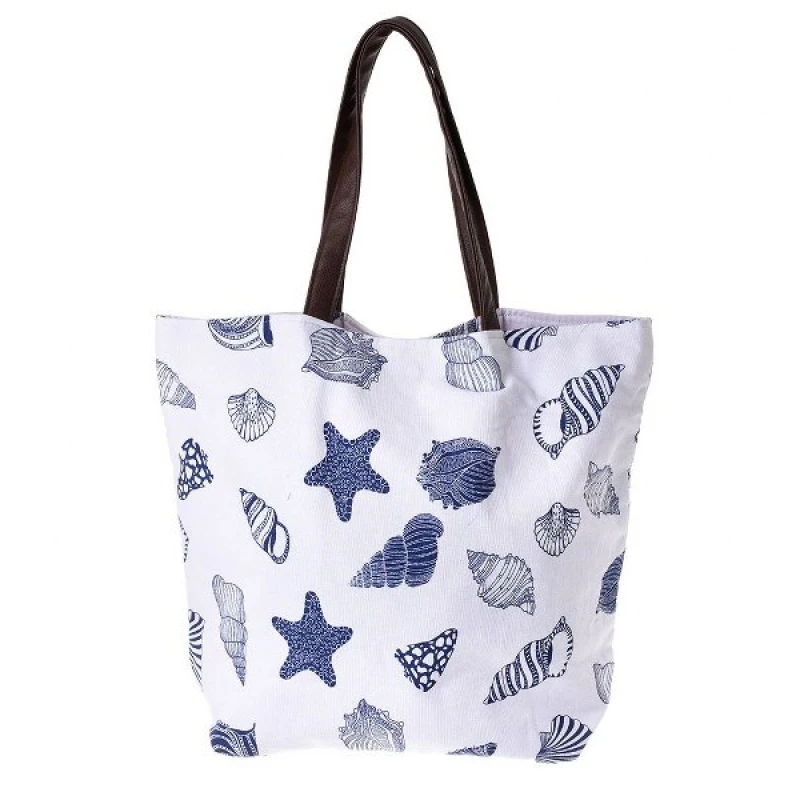 Τσάντα Θαλάσσης Βαμβακερή Λευκή-Μπλε Κοχύλια 48x15x40/65εκ. ble 5-42-230-0010