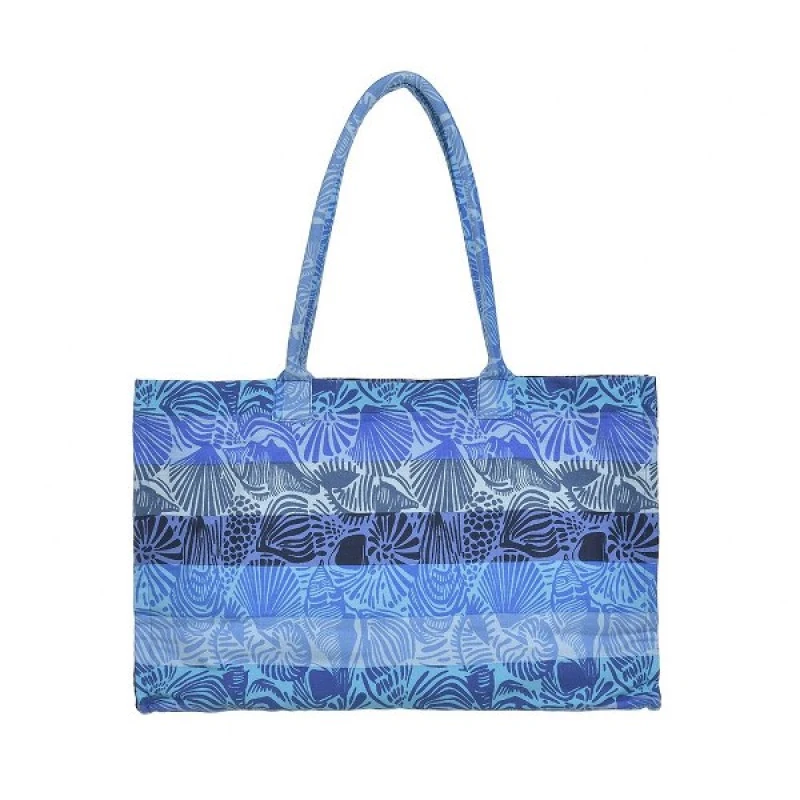 Τσάντα Θαλάσσης Polycotton Μπλε-Τυρκουάζ Με Κοχύλια ble 5-42-304-0254