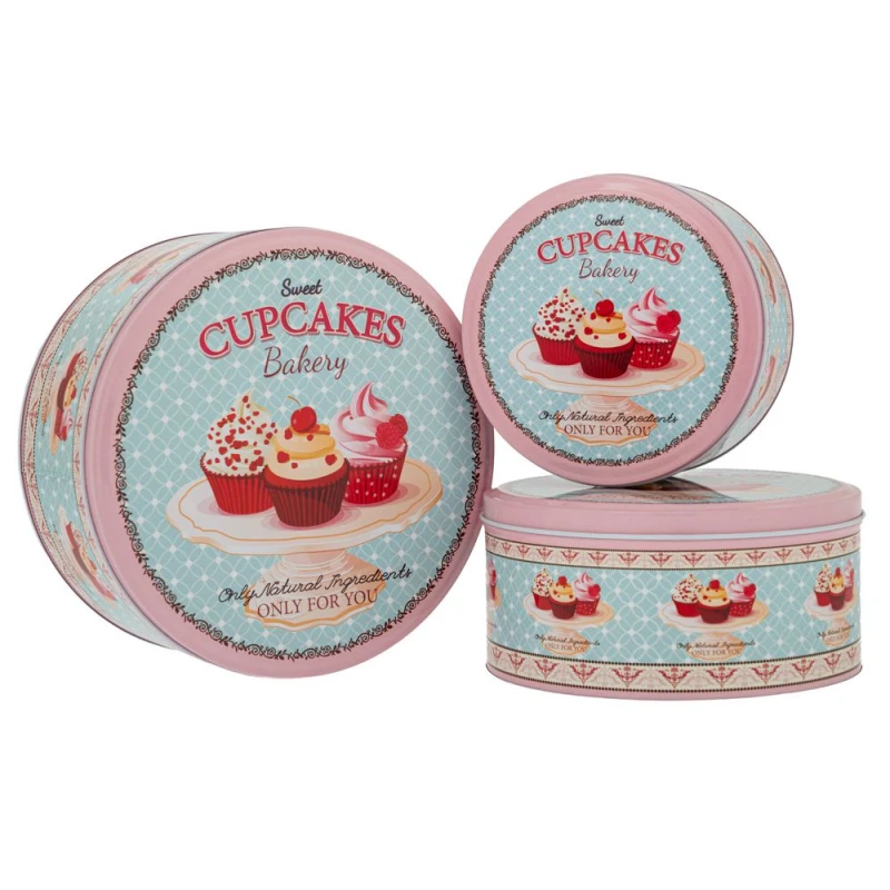 Κουτί σετ 3τμχ μεταλλικό με σχέδιο γλυκά από την iliadis - Διαστάσεις: 20x9εκ.-17x8εκ.-13,5x7εκ.