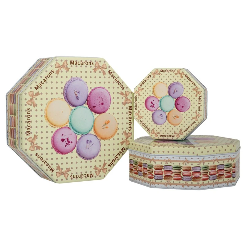 Κουτί σετ 3τμχ μεταλλικό, εξάγωνο με σχέδιο μακαρόν από την iliadis - Διαστάσεις: 21x8εκ.-19x7εκ.-13x4,5εκ.