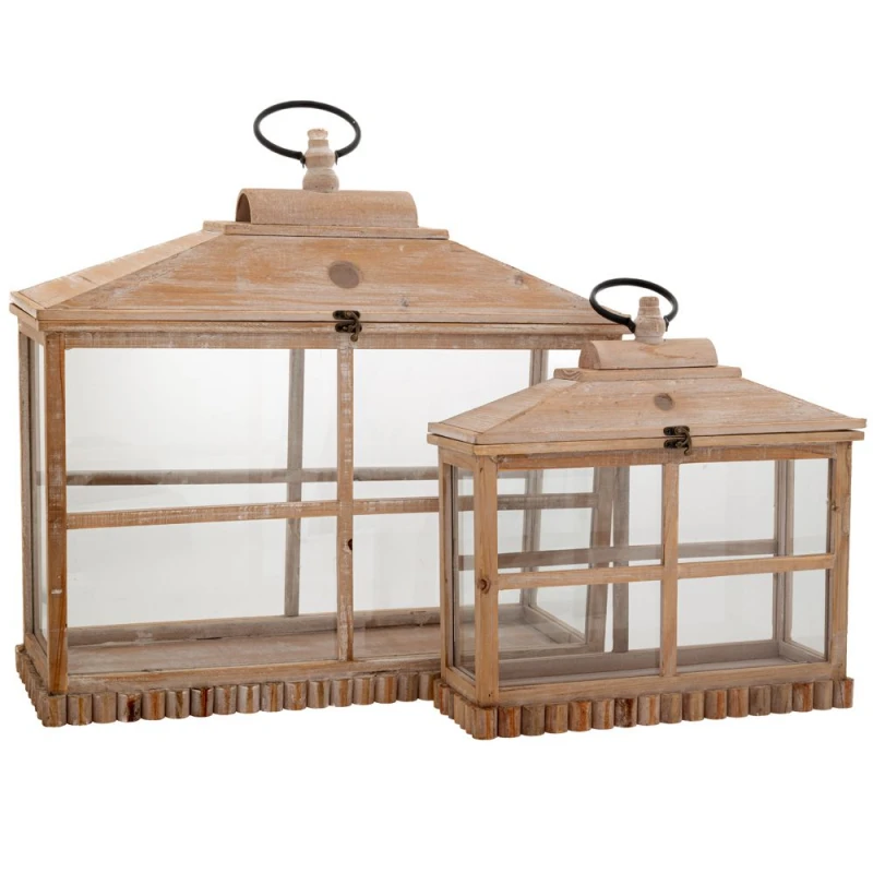 Σετ 2τμχ φανάρια ξύλινα σε ανοιχτό καφέ χρώμα από την iliadis - Διαστάσεις: 62x22x66εκ.-42x16x48,5εκ.
