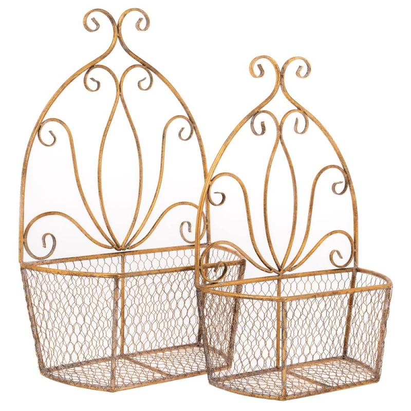 Σετ 2τμχ καλάθια μεταλλικά σε χρυσό χρώμα από την iliadis - Διαστάσεις: 40x19x63εκ.-35x17x55εκ.